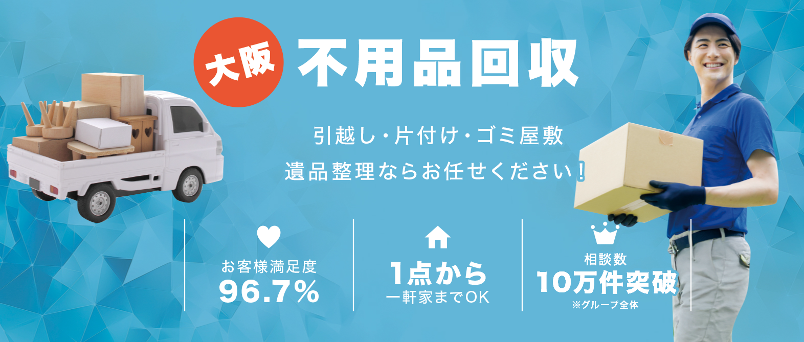 | メリット | 即日回収 大量の不用品に対応 買取にも対応 粗大ゴミの運び出しに対応 土日祝も対応 手間が一切かからない |